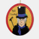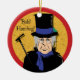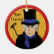 Cet ornement rond de sapin de Noël en céramique présente Ebenezer Scrooge de la romaine de Charles Dickens "A Christmas Carol" et la légende "Bah! Humbug !".