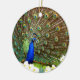 Closeup mâle paon (Pavo cristatus - Oiseau) étalé de fleurs au premier plan