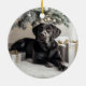 Cet élégant ornement de Noël, avec un Black Labrador Retriever couché sous un arbre de Noël, est un cadeau merveilleux pour tout amateur de Black Lab.