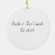 Décor de cheval élégant personnalisé avec les noms et la date d'établissement de votre couple favori. L'avant est illustré par une élégante gravure d'un cheval saddled, l'arrière imprimé avec le texte entièrement modifiable " nom1 & nom2's ranch, Est. ANNÉE". Parfait comme cadeau de ménage pour vos amis motard.