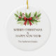 Ajoutez un charme de vacances intemporel à votre arbre avec cet élégant ornement de Noël avec des feuilles saints aquarelles, des baies rouges vifs et un arc rouge festif. Un joli gardien qui saisit la chaleur et la joie de la saison, cet ornement fait un cadeau parfait pour la famille, les amis, ou les hôtes de fête de vacances. Personnalisez-le pour créer une décoration unique qui sera chère pour les années à venir.