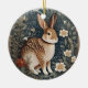 Décoration En Céramique Elégant lapin encadré de fleurs et de Feuilles