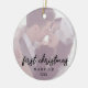Décor en céramique de Noël personnalisé minimaliste et moderne avec des lettres manuscrites élégantes. Personnalisez le produit avec l'année et deux de vos photos préférées.