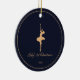 Personalize this modern and elegant 'My First Christmas' ornament with your baby girl's photo, her name, and the year of her birth. Featuring a modern dark-blue background and a delicate pattern of graceful ballerina. Photo tip: crop photo to a square format before uploading to the site.