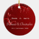 Un rouge luxueux enregistrer la date mariage pendante ornement, avec un magnifique rouge, vintage défilement motif et texte personnalisé que vous pouvez personnaliser avec vos propres détails. Veuillez noter que ce ornement mariage rouge a été créé pour correspondre à une suite mariage complète d'invitations, RSVP, annonces et plus avec le même design, que vous pouvez trouver ici : https://www.zazzle.com/collections/elegant_red_wedding-119318179366725501