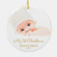 Ce ornement de Noël rond propose un premier thème de Noël pour bébé. Le texte "Mon 1er Noël" apparaît dans un élégant script doré. Le texte personnalisé vous permet d'ajouter le nom et l'année de votre nouveau-né.