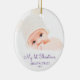 Ce ornement de Noël rond propose un premier thème de Noël pour bébé. Le texte "Mon 1er Noël" apparaît dans un élégant script violet. Le texte personnalisé vous permet d'ajouter le nom et l'année de votre nouveau-né.