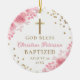 Élégante Parties scintillant or rose floral Baptême photo ornement en céramique