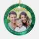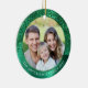 Ce bel ornement de vacances est composé de métal brossé vert et arrière - plan de parties scintillant et personnalisée avec votre photo préférée et nom de famille.