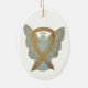 L'ornement de l'ange gardien présente la peinture d'un ange gardien de ruban de sensibilisation à l'or. Le ruban de sensibilisation à l'or signifie un soutien à la sensibilisation à l'enfance ou au cancer pédiatrique. L'art du ruban de l'ange de la sensibilisation à l'or peut être customisé de messages personnalisés pour faire des ornements de grande cause ou des pendentifs pour des collectes de fonds, des cadeaux de Noël ou de vacances de sensibilisation, ou d'autres événements ou occasions spéciales.