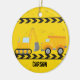 excavatrice de construction sur mesure cool ornement de Noël pour un enfant qui aime les véhicules de construction jaune en noir et jaune. Un cadeau amusant pour un petit garçon qui aime les voitures et les camions. Customisez avec le nom de votre enfant sous le ruban de prudence noir et jaune.