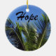 Plantes tropicaux contre un ciel bleu avec le message : "Esperanza" d'un côté et "Hope" de l'autre. L'espéranza est espagnol pour "Hope".