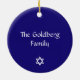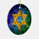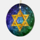 Ajoutez votre nom de famille ou vos propres mots à l'arrière de cet ornement décoratif. L'Étoile de David (Magen David) flottant sur une galaxie violette, bleue et verte profonde.