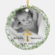 Ornement de baptême et de baptême Eucalyptus vert avec double photo avec cadre rond de feuille d'eucalyptus. Personnalisez votre propre photo 2 horizontale ou carré. Grand cadeau pour votre famille et vos amis pour la saison des fêtes.