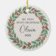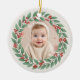Celebrate a sweet first holiday season with this eucalyptus greenery Baby First Christmas photo ceramic ornament. Soft botanical accents surround your little one’s photo, creating a calm, natural, and timeless aesthetic. The clean minimalist layout keeps the focus on your baby, while crisp print quality and a polished finish make this ornament a cherished keepsake or thoughtful holiday gift.