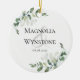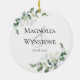 Ce magnifique design avec son aquarelle de verdure eucalyptus peut être personnalisé avec le nom et la date du couple mariage.