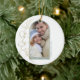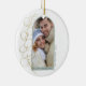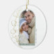 Jolie feuille d'or, la verdure d'eucalyptus surplombe une arche verte d'eucalyptus avec votre photo spéciale. Joyeux salut avec chambre pour le nom de famille et l'année. Un ornement unique et adorable de gardien de Noël arboré !