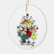 Stick figure family with expectant mom, dad, boy, girl, and gray dog.