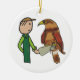La conception de la faucille montre un fauconer fervent tenant son oiseau de proie qui l'observe de près.