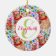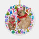 Festive famille Quokka ornement céramique personnalisé avec aquarelle d'inspiration rétro souriant kangourous sur un arrière - plan blanc. Ces kangourous de Noël australiens sont parfaits pour les cadeaux de Noël, ou les ornements d'arbres, ou les cadeaux, illustrés par Jo Story of Sketchbook Designs. Ce joyeux et amusant ornement de Noël ferait le parfait souvenir de Noël.
