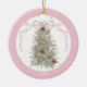 Celebrate a milestone you’ll treasure forever with this sweet Family Christmas Ornament. Designed with a soft pink border and delicate watercolor details, one side features a festive Christmas tree topped with a ribbon bow and personalized with the year. The reverse side showcases your favorite photo, framed with matching ornaments, greenery, and bows. Capture the magic of your little one’s first holiday season with a personalized ornament that will sparkle on your tree year after year.