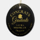Un cadeau souvenir ornemental élégant de remise des diplômes comportant les détails de votre diplômé et un message spécial au verso dans une typographie chic sur fond noir et or pailleté. Conçu par Thisisnotme©