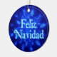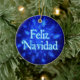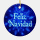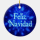 Un essaim de flocons de neige fractaux bleus. Le texte espagnol "Feliz Navidad" apparaît en bleu et blanc éclatant.