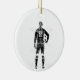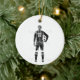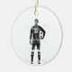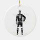 Monochrome watercolor artwork of a female soccer goalie holding a ball, printed on a ceramic ornament. A modern and artistic decoration perfect for sports lovers and athletes.