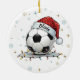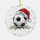 Festive Soccer Ball Holiday Design with Snowflakes and Sparkles Ceramic Ornament