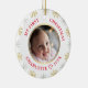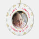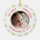Cet ornement de Noël personnalisé présente un design de flocon de neige avec un faux or. Personnalisez le nom, l'année et la photo. Ce modèle fonctionne le mieux avec les photos au format paysage avec le bébé au centre.