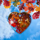 Automne Feuilles avec un soupir de soleil brillant à travers.