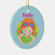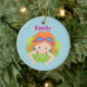 Baigneuse mignonne avec des pigeons à tête rouge dans un tube intérieur flottant sur un joli arrière - plan d'eau bleu. Customisé avec le nom de votre petite fille en rose vif. Un grand cadeau pour une personne en équipe de natation ou qui aime la piscine en été. Photo prettygrafik.com