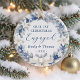 First Christmas Engaged Floral Wreath Photo Ceramic Ornament