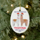 Funny and cute Christmas ornament for all the happy couples. It features a couple of llamas wearing Santa Hat. Easy to personalize with your Names and Year