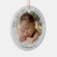 Celebrate the magical milestone of being new grandparents with this beautiful Grandparents' First Christmas Baby Photo Ornament! This elegant ceramic ornament is designed to cherish that special "first Christmas" with your beloved grandchild. The front features a round photo template to perfectly showcase your precious baby's picture, set against a stunning crushed white foil digital effect background with subtle sparkle for a truly luxurious and festive touch.