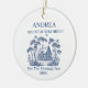 Celebrate your home ownership milestone with this "First Year Mortgage Free" design. Features a classic blue Toile de Jouy cottage illustration. Easily customize the name, street address, and year to create a unique personalized keepsake or housewarming gift. Perfect for 2026 celebrations.