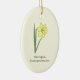 Un ornement jaune clair avec une illustration botanique de fleur de jonquille en couleurs pastel (Narcissus pseudonarcissus) et un texte personnalisable : parfait pour votre décoration d'arbre de Noël ou pour un cadeau à un amoureux des fleurs. La jonquille sauvage est la fleur de naissance de mars, la fleur des Pisces et des Béliers et est un symbole de renaissance, de pardon, de créativité, d'énergie et de vitalité.