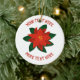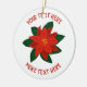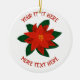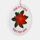 Fleur rouge Poinsettia personnalisées ornement en céramique de Noël. Décor x-mas personnalisé avec dessin d'art floral. Un joli souvenir de vacances hivernales. Faites votre propre décoration de Noël et d'arbre. Inclut une chaîne de parties scintillant en or pour l'accrocher. Ajoutez votre propre photo ou texte au verso en option. Couleur arrière - plan personnalisable. Idée cadeau unique pour le 1er Noël du couple, les jeunes mariés, ami, famille, collègue, collègue, employé etc.