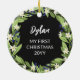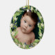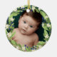 Beau ornement de Noël fleuri avec votre photo à l'intérieur d'une couronne de baies fleurie de vert sauge, fleurs blanches et baies bleues. Ajoutez le nom de votre bébé et l'année à l'arrière.