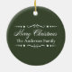 Élevez votre décor de vacances avec notre Ornement en céramique Festive Festive en Forêt Verte Personnalisée. Cette ornementation magnifiquement artisanale présente un design festif rouge vif d'un côté, orné de motifs complexes d'étoiles, de points, de lignes pivotantes gracieuses et de feuilles saints, créant une composition kaléidoscopique fascinante. Au contraire, "Joyeux Noël" est élégamment scénarisé entre deux rangées du même motif vert de forêt, complété par une police minimaliste personnalisable pour afficher votre nom de famille. Fait de céramique de haute qualité, cet ornement ajoute une touche de chaleur et de personnalisation à vos célébrations saisonnières. Parfait pour donner ou orner votre propre arbre, c'est un gardien chéri pour les années à venir.