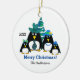 Joyeux Noël. Amusante Famille Penguin de 4 avec Fille et Garçon Cadeau de Noël Ornements avec nom de famille personnalisé, année et salutation. Cartes et cadeaux avec différents membres de la famille disponibles dans la catégorie Noël et Nouvel An de notre magasin.