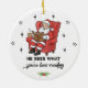 Apportez un humour festif à votre décor de vacances avec ce ornement de Noël ludique avec Père Noël se relaxer dans une chaise confortable, en lisant un bon livre avec une boisson chaude à la main. L’expression spirituelle "Il voit ce que vous avez lu" en fait un cadeau parfait pour les vers de livres, les bibliothécaires, les enseignants ou toute personne qui aime la littérature. Un souvenir de vacances unique qui allie la joie de Noël à l'amour de la lecture, idéal pour ajouter de la personnalité à votre arbre ou de donner à d'autres amateurs de livre cette période de vacances.
