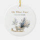 Cet élégant ornement en céramique est l'ajout parfait à votre sapin de Noël ou un cadeau de souvenir réfléchi. L'un des côtés présente le graphique chic de traîneau d'hiver avec des accents d'or et de gris et la phrase "Oh What Fun! c'est de faire du traîneau." L'envers est une toile merveilleuse pour votre photo de famille préférée et le texte personnalisé, comme un nom de famille et l'année. C’est une belle façon de capturer un souvenir et de faire un cadeau de Noël parfait.