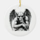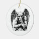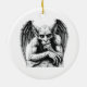 This captivating design fea contemplative gargoyle, perched in thought with a brooding, expression melancholic. The gothic and morbid tones of the artwork evoke feelings of solitude, ancient mystery, and dark allure. Perfect for those who appreciate gothic architecture, dark symbolism, and the eerie beauty of gargoyles.