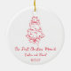 Célébrez votre premier Noël en couple marié avec ce charmant ornement en céramique avec un joli croquis rouge de doodle d'un gâteau mariage, accentué par un script manuscrit. Le design unique est à la fois esthétique et ludique, ce qui en fait un parfait souvenir pour commémorer votre journée spéciale. Personnalisé avec vos noms et l'année, cet ornement capte la joie et l'amour de votre première saison de vacances comme de nouveaux mariés, ajoutant une touche douce et élégante à votre décor festif.