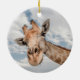 Ornement décoratif en céramique avec l'image d'une girafe très curieuse et drôle de part et d'autre.