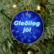 Un essaim de flocons de neige fractaux bleus. Groenland. Le texte islandais "Gleðileg jól" (Joyeux Noël) apparaît en bleu et blanc éclatant.