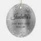 Créez votre propre ornement de 21e anniversaire avec une photo sur le dos. L'oeuvre numérique présente une parties scintillant en faux argent, des étincelles et du papier métallique brossé gris argenté. Les éléments d'art s'impriment comme une photo. Si vous supprimez la photo au dos.