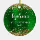 Décoration En Céramique Gold Glitter Green Faux Foil 1st Christmas Photo