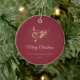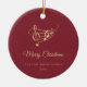 This musical Christmas ornament features a wavy stave with music notes and a treble clef in faux gold on a red background, accompanied by "Merry Christmas" in elegant script typography. Ideal for professional music ensembles, singers, choirs, chamber music groups, bands and orchestras . Personalize it with your own text, and take advantage of the editing tool to fine-tune the font size and placement.